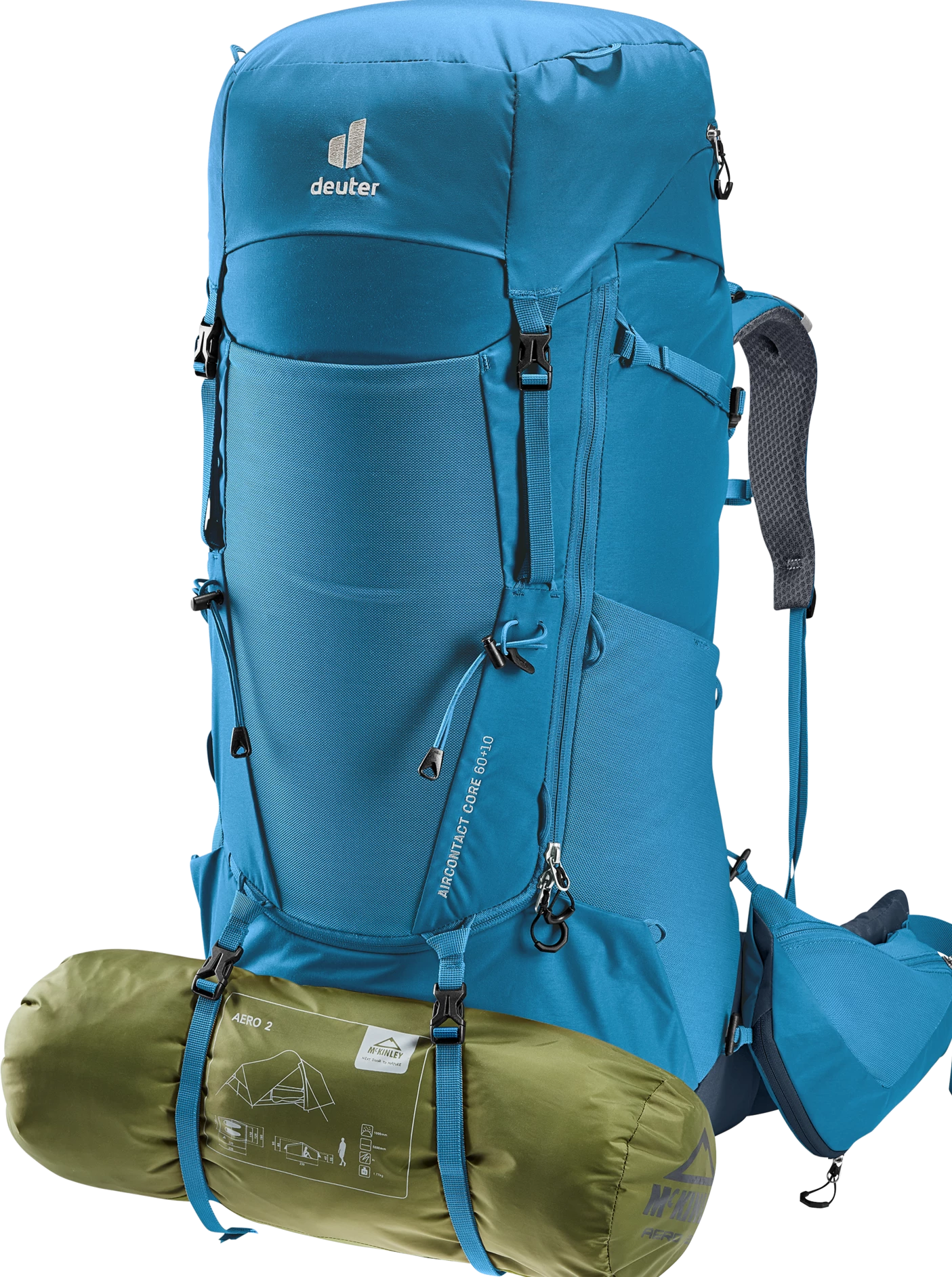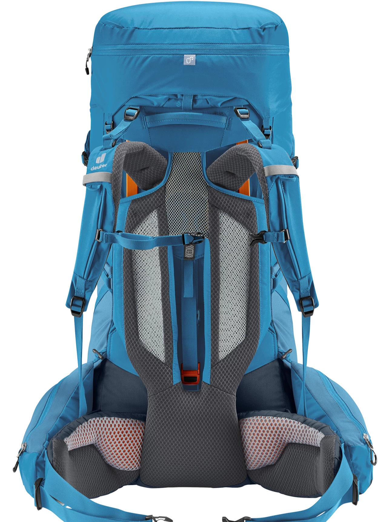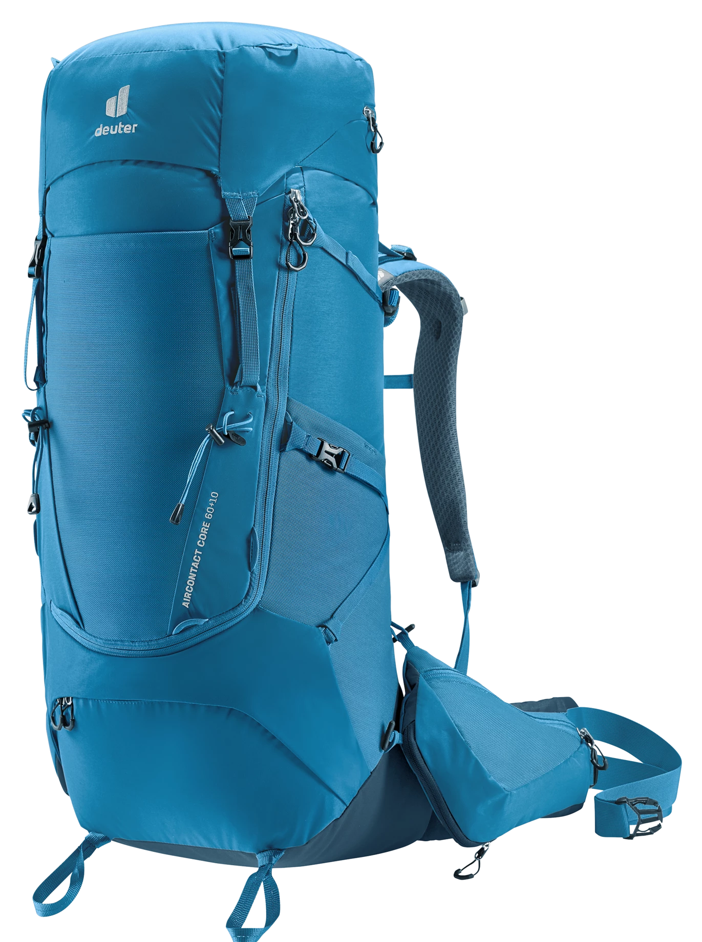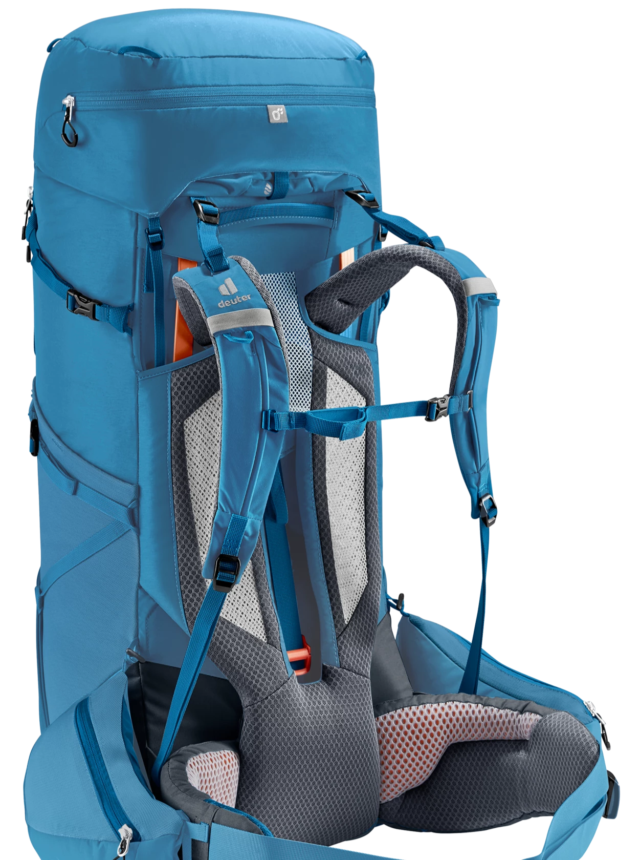 It’s superior carry comfort is down to the Deuter Aircontact back system with Air Spacer mesh and a large ventilation channel, plus ergonomic ActiveFit shoulder straps and an adjustable sternum strap. The Y-shaped frame, mobile hip fins and ergonomic lumbar pad combine to distribute the load effectively. A full-length, J-shaped zipper on the front makes contents easy to locate lower down in the main compartment. While large, detachabel hip fin pockets (3 L) provide extra storage and keep itmes within reach. A zip-out 1.5 L bottle bottle holster also lets you hydrate on the move. Depending on what you’re doing, the modular gear straps on this pack can be positioned to attach a range of items – to attach a sleeping mat or tent, or to compress the loadin the base of the pack.