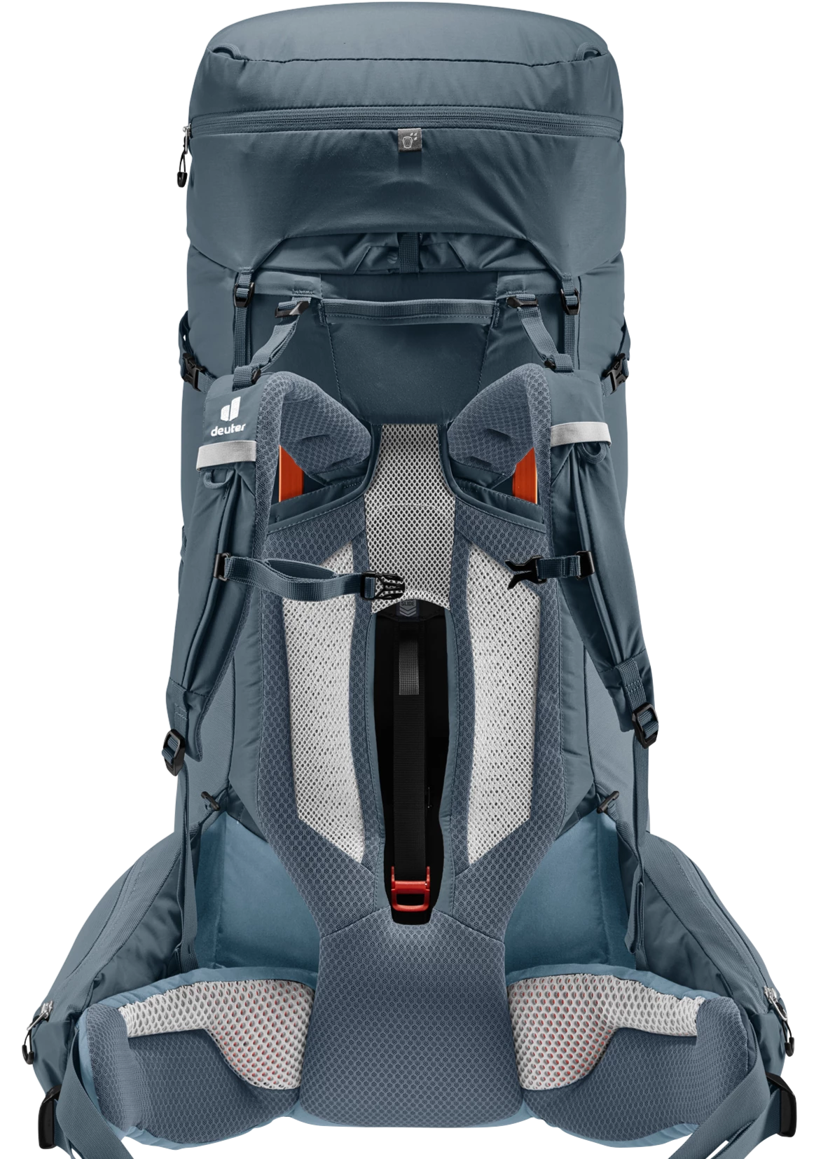 The easiest way to carry heavy loads is when the backpack and wearer become one. This is what Deuter’s Aircontact principle is all about: the body contact system brings the weight close to the body and therefore close to the centre of gravity. This results in full pack control and an effective load transfer. Furthermore, Deuter’s Aircontact cushions made from special hollow chamber foam guarantee fantastic ventilation due to the pump effect of every movement. Up to 15% less perspiration compared to a stanadard compact back system – combined with oustanding load transfer and a secure, perfectly balanced fit.