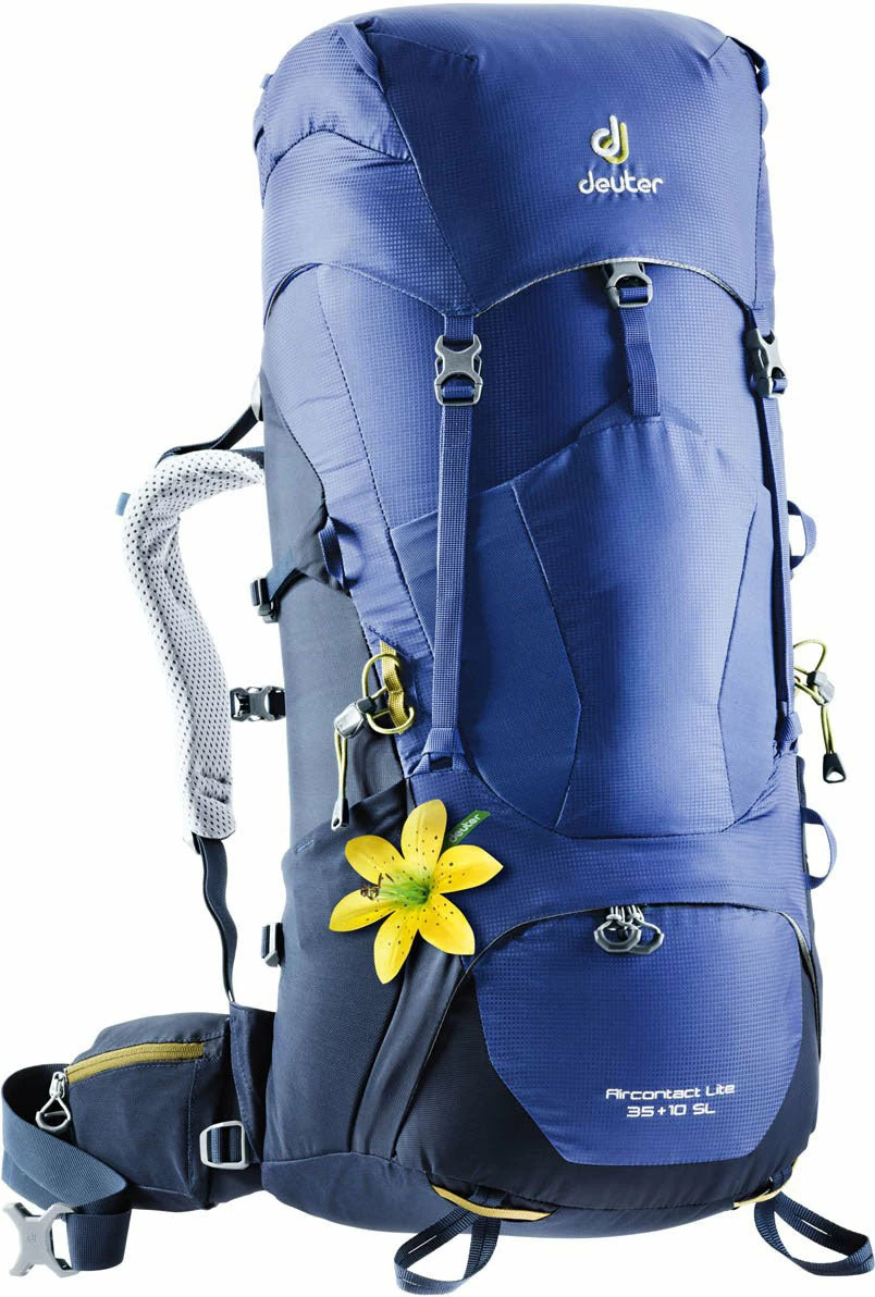 The Deuter Aircontact Lite 35+10 is a fully functional backpack that is ideal for trekking or more demanding daywalks. Could easily be used as an overnight pack if you pack light. Bottom compartment and access, top-loading style. This is a lighter design than Deuter’s AirContact series. Women’s design.