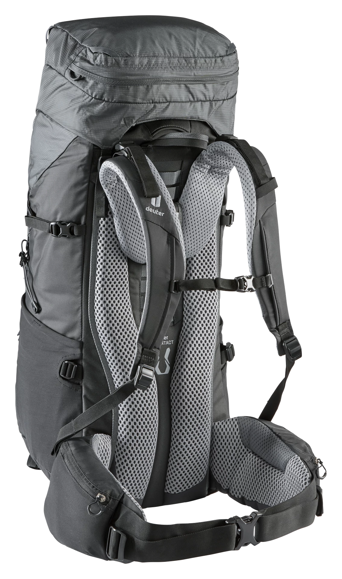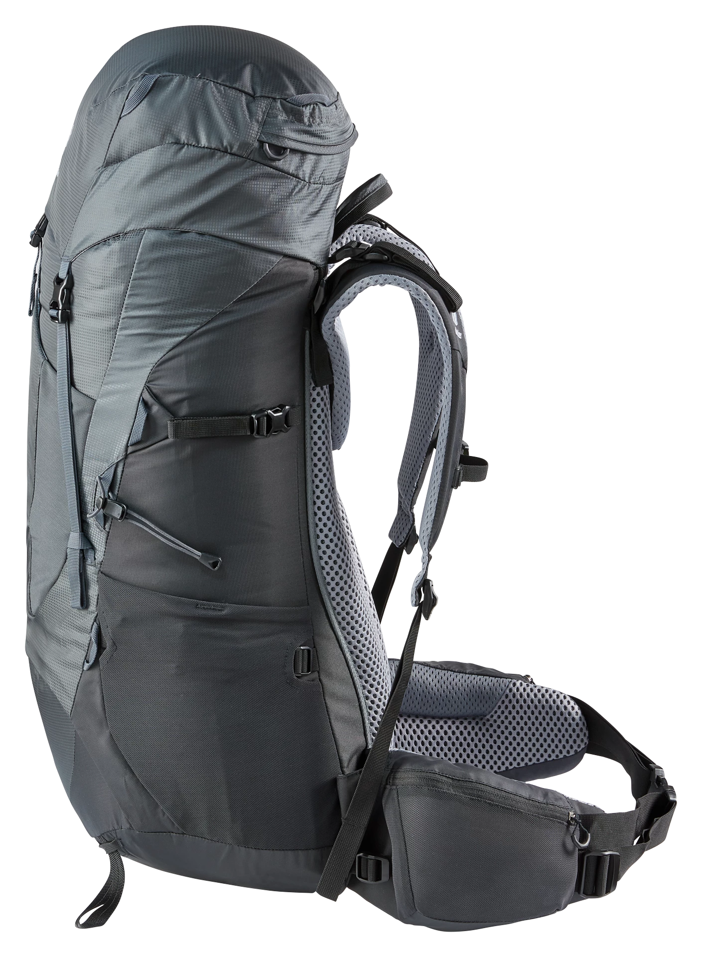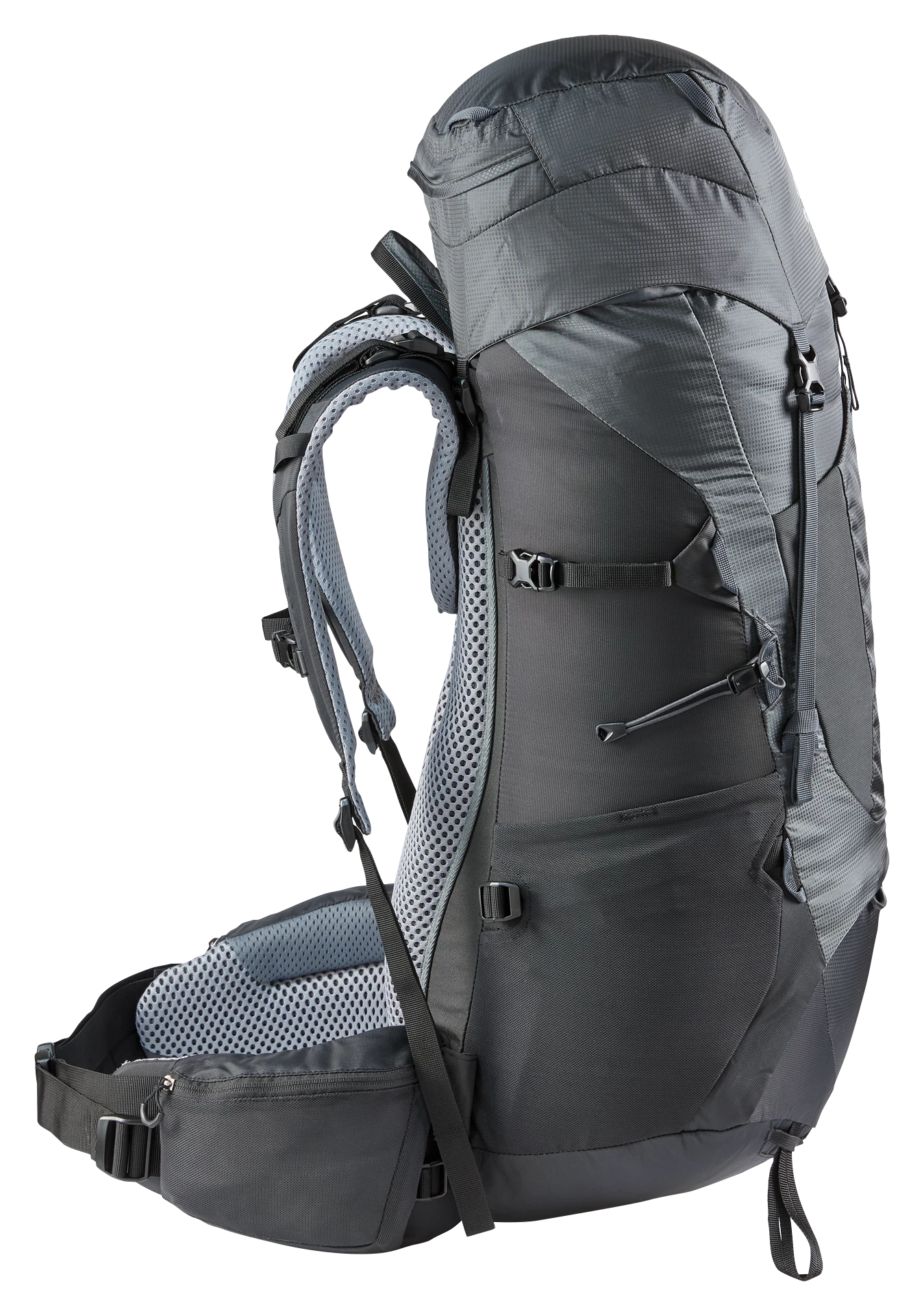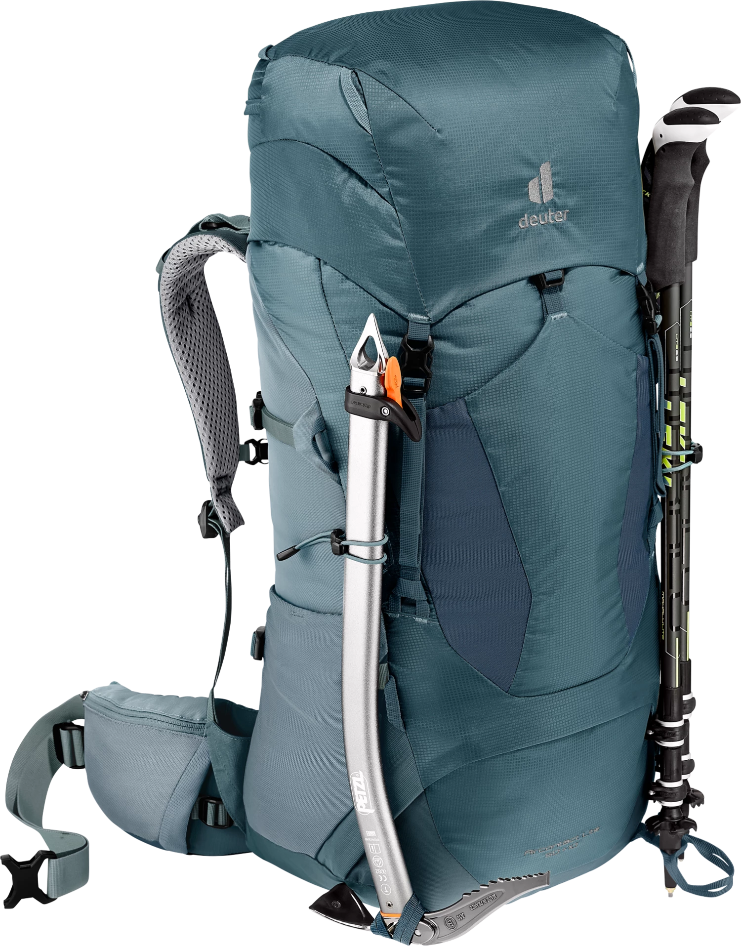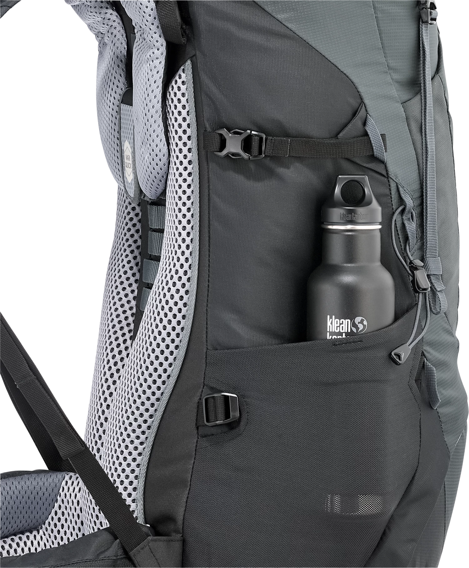 Deuter’s lightweight hiking pack is now even lighter and features the Aircomfort back system for maximum ventilation. With VariQuick back length adjustment and adjustable sternum strap, ergonomic shoulder straps and hip fins, this no-frills pack has all the carry comfort you need for hiking over long distances or thru-hiking. As a top loader, contents are easy to pack and unpack. A cell phone or snack are quickly accessed in the airy stretch mesh side pockets. And a helmet holder can be added using dedicated attachment loops on the front.