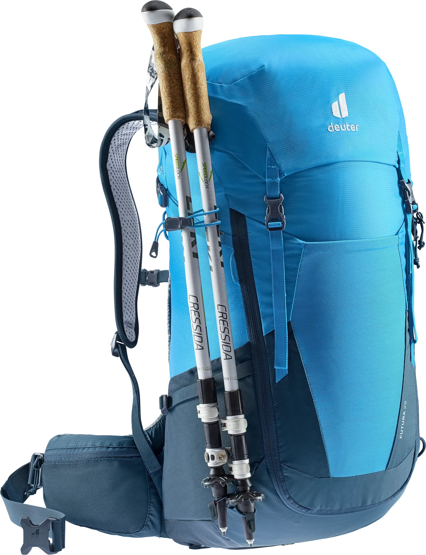 Comfortable through the countryside: This light and functional top-loader is perfect for longer day hikes, mountain tours or fixed-rope climbing routes. The new ergonomic Aircomfort Sensic mesh back system makes the Futura lightweight. It moulds itself comfortably to your back thanks to its new design and ensures maximum back ventilation.
