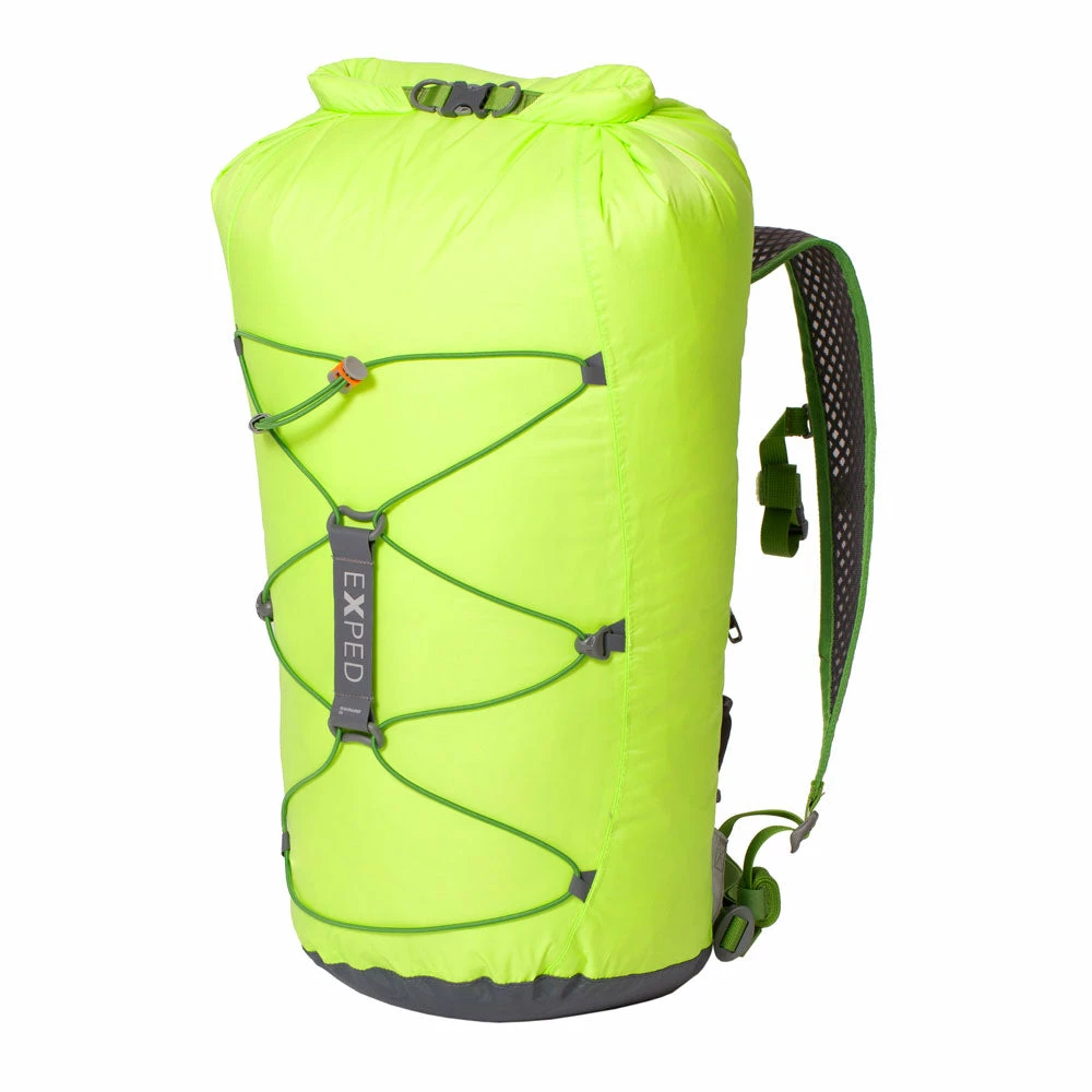 A 25-litre, extremely lightweight waterproof sack with straps to enable it to be worn as a backpack. The straps, unlike on the smaller versions, are more thoughtfully designed. External bungee for outer storage.