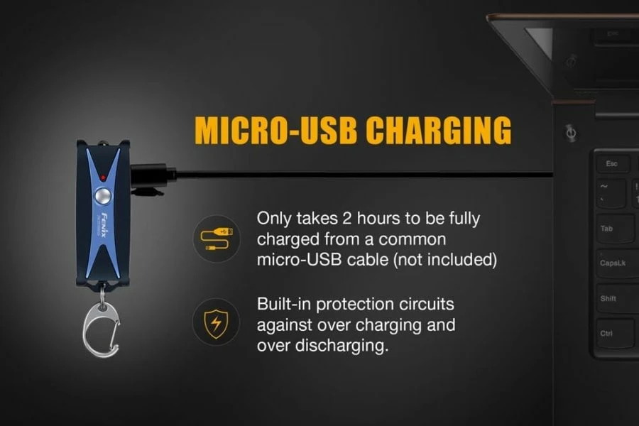 - Included: Key chain (micro-USB cable not included)
