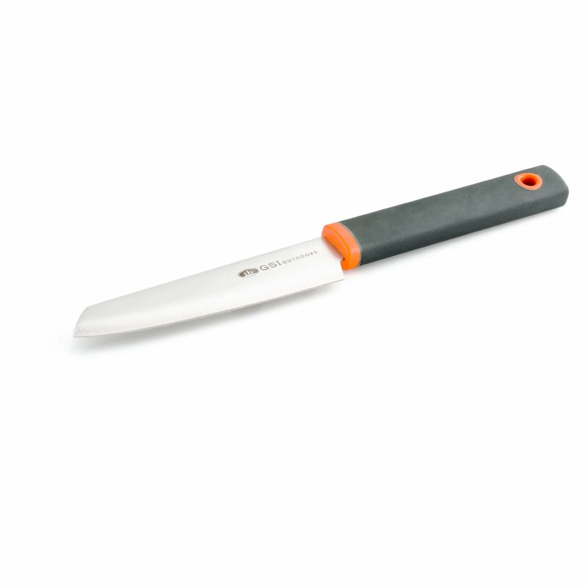 Prep your gourmet camp meals with the compact, stainless steel GSI Outdoors Santoku 4 Inch Paring Knife. The perfect outdoor camp prep chef tool.