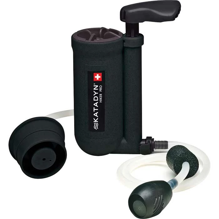 The Katadyn Hiker Pro is Katadyn’s best-selling water filter. Thanks to its large filter area, the Katadyn Hiker Pro delivers outstanding pumping performance. It reliably eliminates bacteria, cysts and sediment from water. The filter is very easy to clean on trips, thanks to its cleanable filter protector. The filter protector also appreciably extends the life of the 0.3-micron glass-fibre filter cartridge. Its active carbon filling improves the taste of water and eliminates odours. Flow rate: 1 litre per minute.