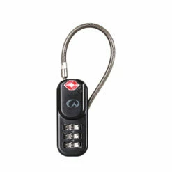 This TSA combination zipper lock uses a durable and flexible cable shackle to help ease it through zip tags. It has a resettable three-digit lock combination and strong zinc-alloy body. It will fit most lockable luggage zips.