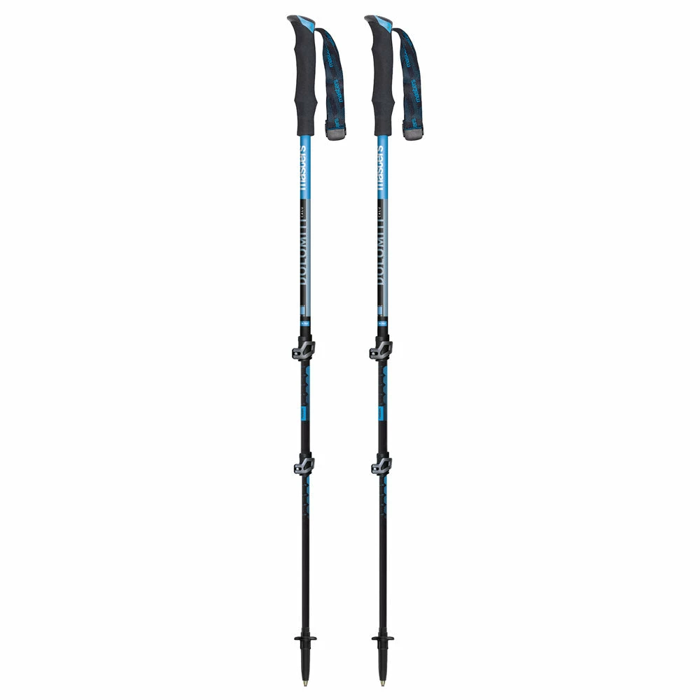 Ultra-strong trekking pole made from Calu® Tech. Pack size 66cm. Extended length 135cm. Telescopic. Winglock. Carbide tip.