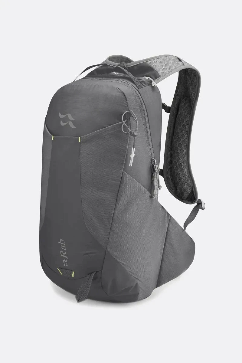 The Aeon LT 18 has on harness walking pole attachment and stretchy side stash pockets, enabling quick access to kit for adapting to oncoming terrain and turbulent weather. It has an addititonal walking pole attachment on the front of the pack, a front stack pocket ideal for wet gear, and side compression straps to secure the contents. Hydration compatible with space for 3L bladder, with zipped harness pockets for storing snacks, gels, or flasks.