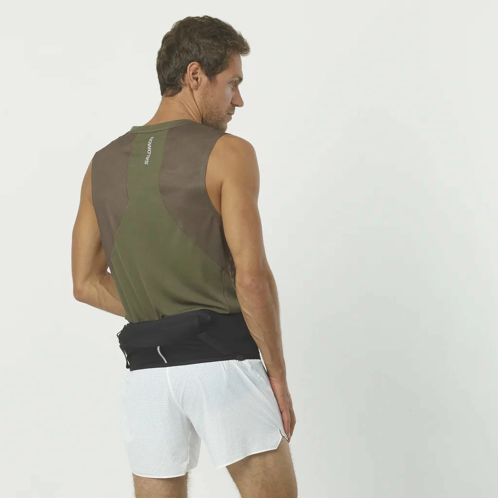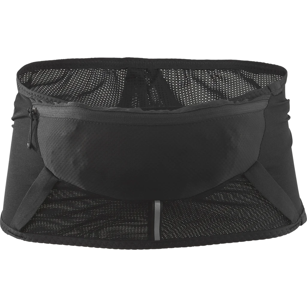 Fitted to stay put, with no complex adjustments on the go. This belt is made to simply step into and pull up. Wrapped in a stretchy, breathable fabric, with expandable pockets for all the essentials, but a wide build to create minium bounce.