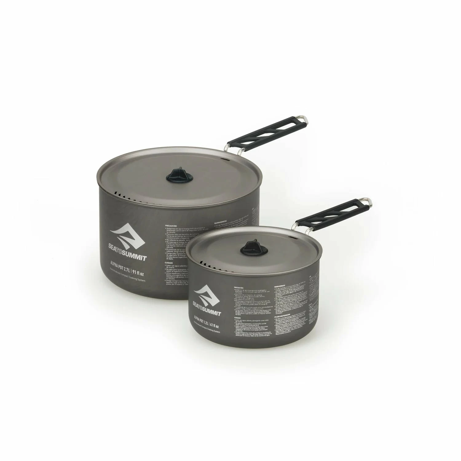 This compact two-pot cook system combines the 1.2L and 2.7L Alpha Pots, which nest inside each other to just 120mm tall, perfect for small groups of 2-3 people.