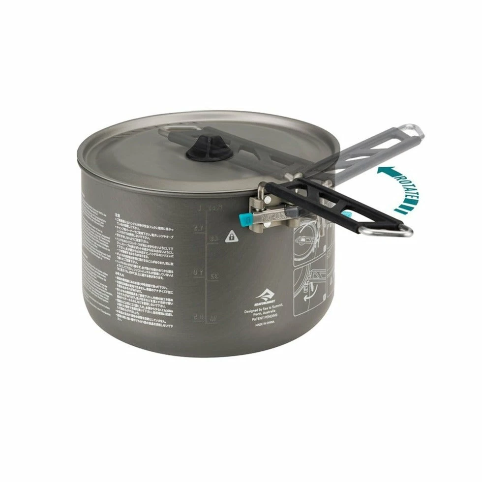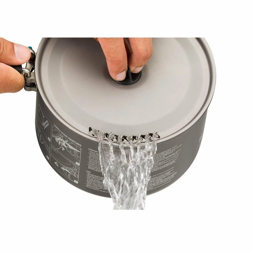 Both the Alpha Pans and Alpha Pots are made of a high spec hard anodised premium alloy, allowing them to be thinner and lighter but still extremely strong and durable. A sandblasted base adds texture making them more stable on a camp stove.