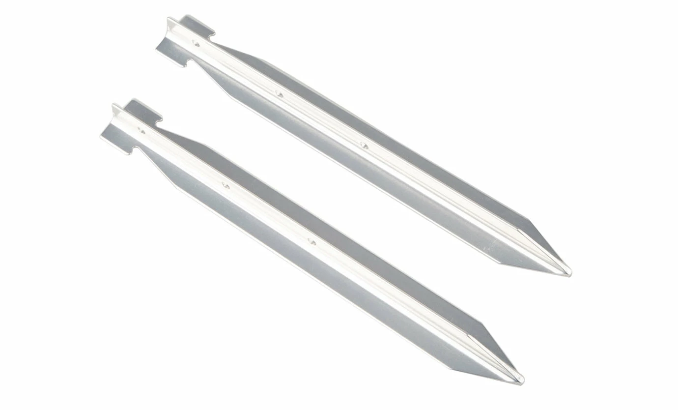 Although heavier than traditional snow pegs this long, T-Section snow and sand peg is far sturdier when the snow is patchy. With its 25mm wide flange has excellent resistance in soft ground. No matter where you are looking to camp, three or four of these should make their way into every peg rack.